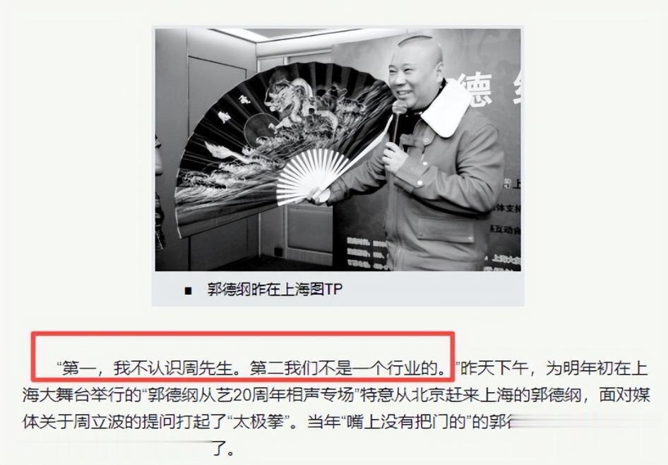 面对这样的指责,郭德纲没有正面和周立波争执,反而展现出了大度,