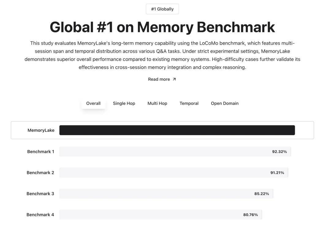 MemoryLake 的性能指标,为其生产级记忆基础设施能力提供了支撑: