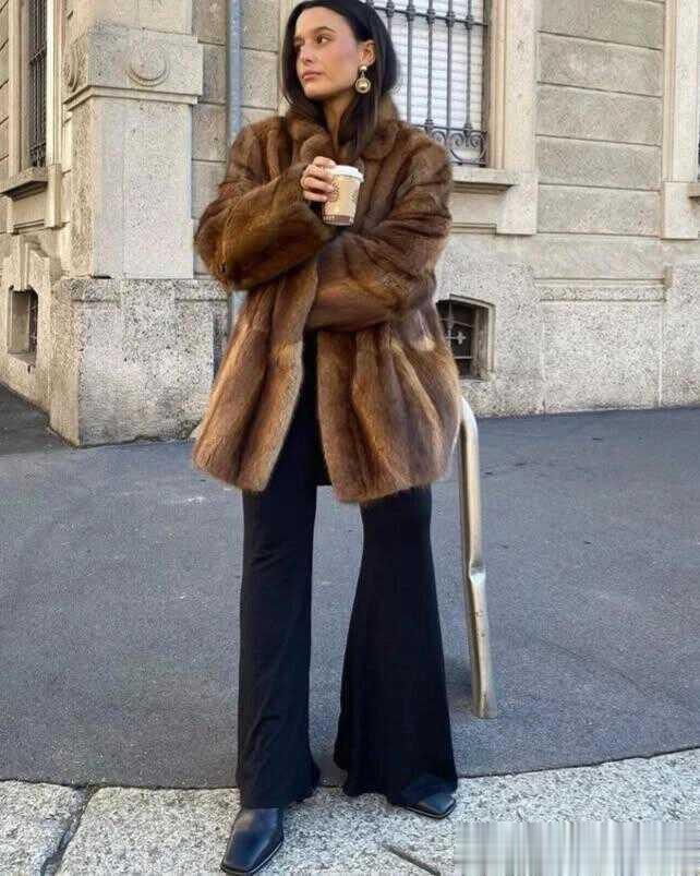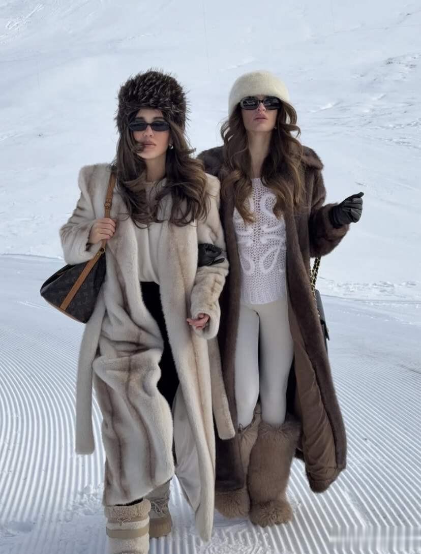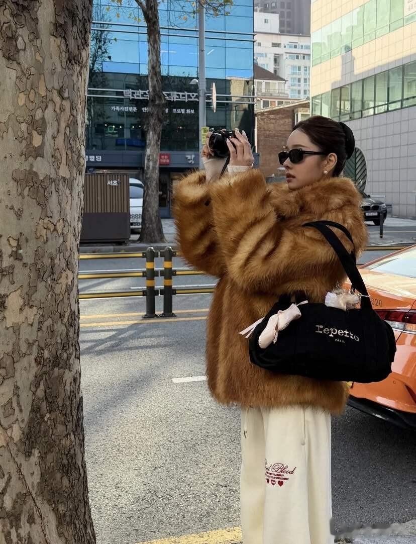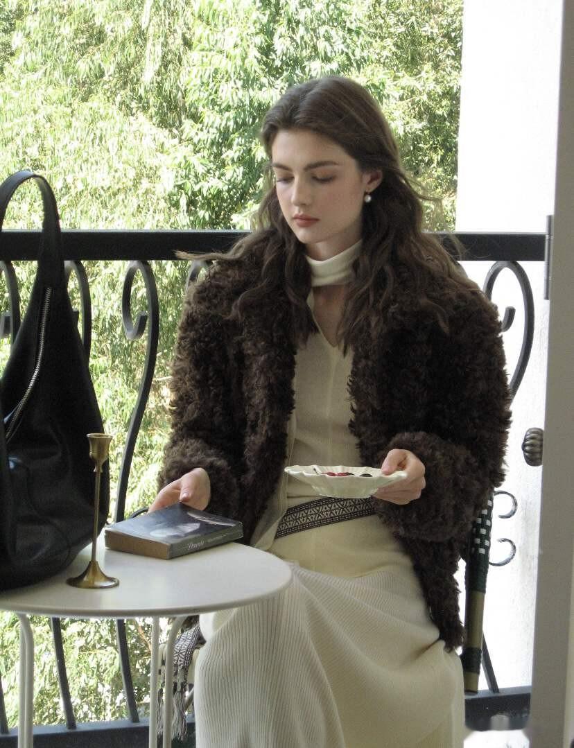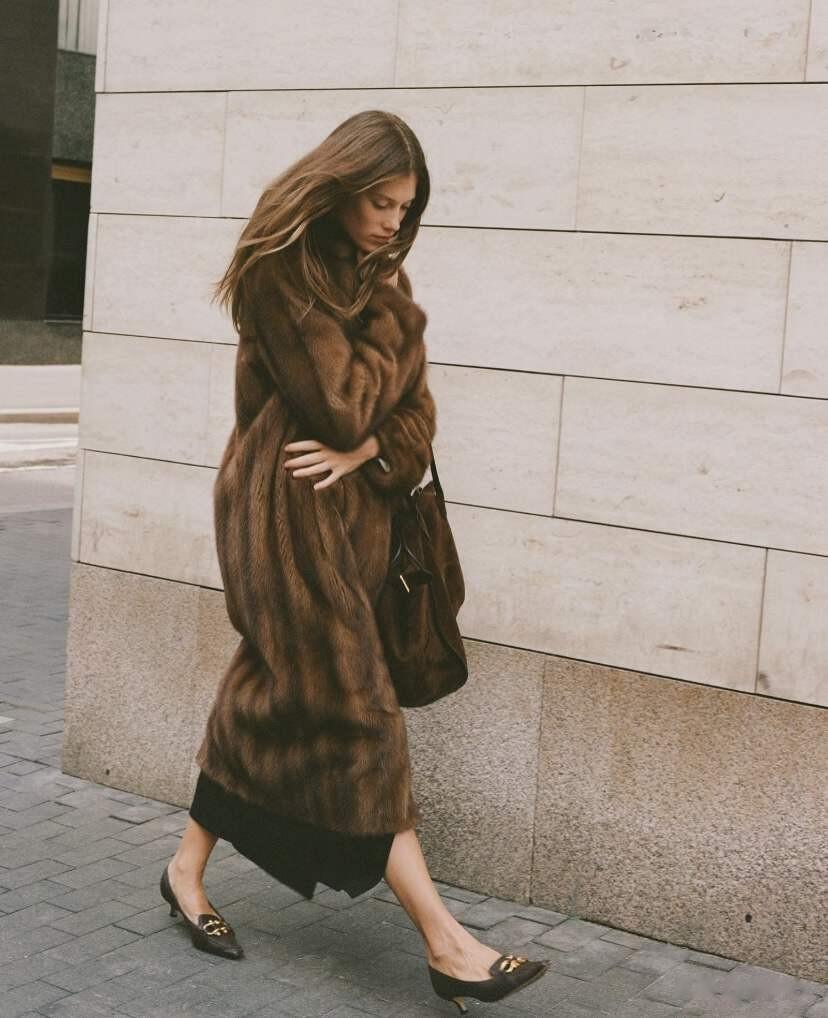 但比起美貌,更吸引我的,还是她身上那件棕色皮草大衣,波光粼粼的意式中古貂,穿在身上贵气优雅、温暖满分。