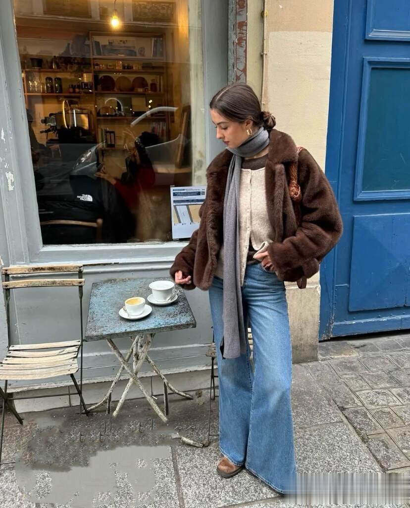牛仔裤身为百搭单品,和“皮草”依然是绝配,不用过多思考,直接穿上就很美。