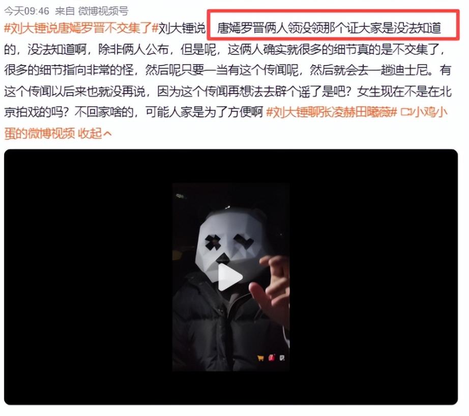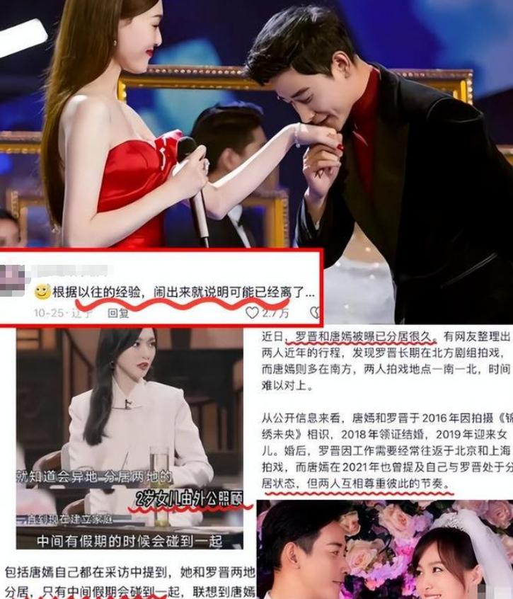 就在最近这几天,他突然在自己的直播中说罗晋和唐嫣两个人没有交集了,从他知道的很多细节方面都没有交集。