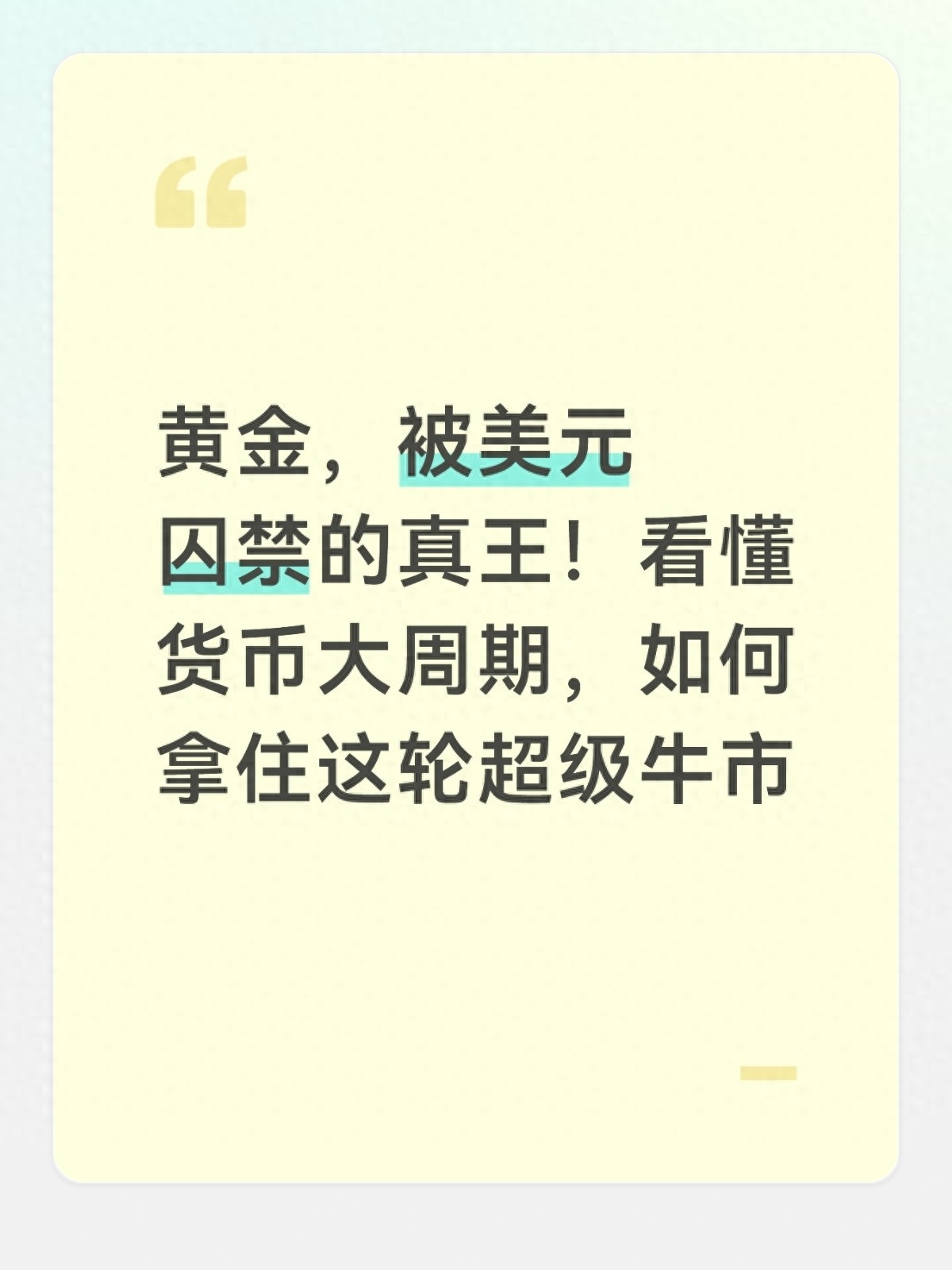 在全球货币体系剧烈重构的今天,有一个判断正在被越来越多的投资者认同:黄金,是被美元暂时囚禁的真王。