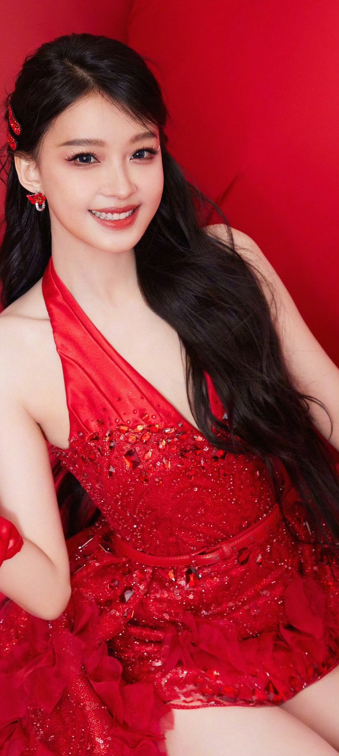 孙怡红裙美腿穿搭,缕纱倩影,可甜可御