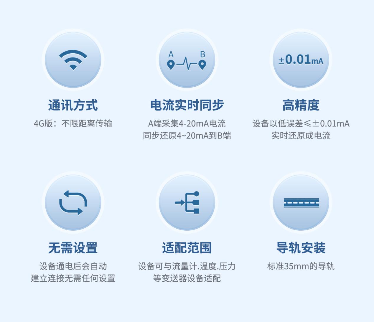 在信号传输方面,设备支持A端4-20mA电流信号同步至B端,具备高精度的电流还原能力,可将输入电流实时、准确地复制还原到输出端,传输误差控制在≤±0.01mA以内,确保数据真实可靠,满足精密控制需求。